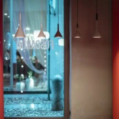 – Diese Hängelampe ist in verschiedenen Farben erhältlich.