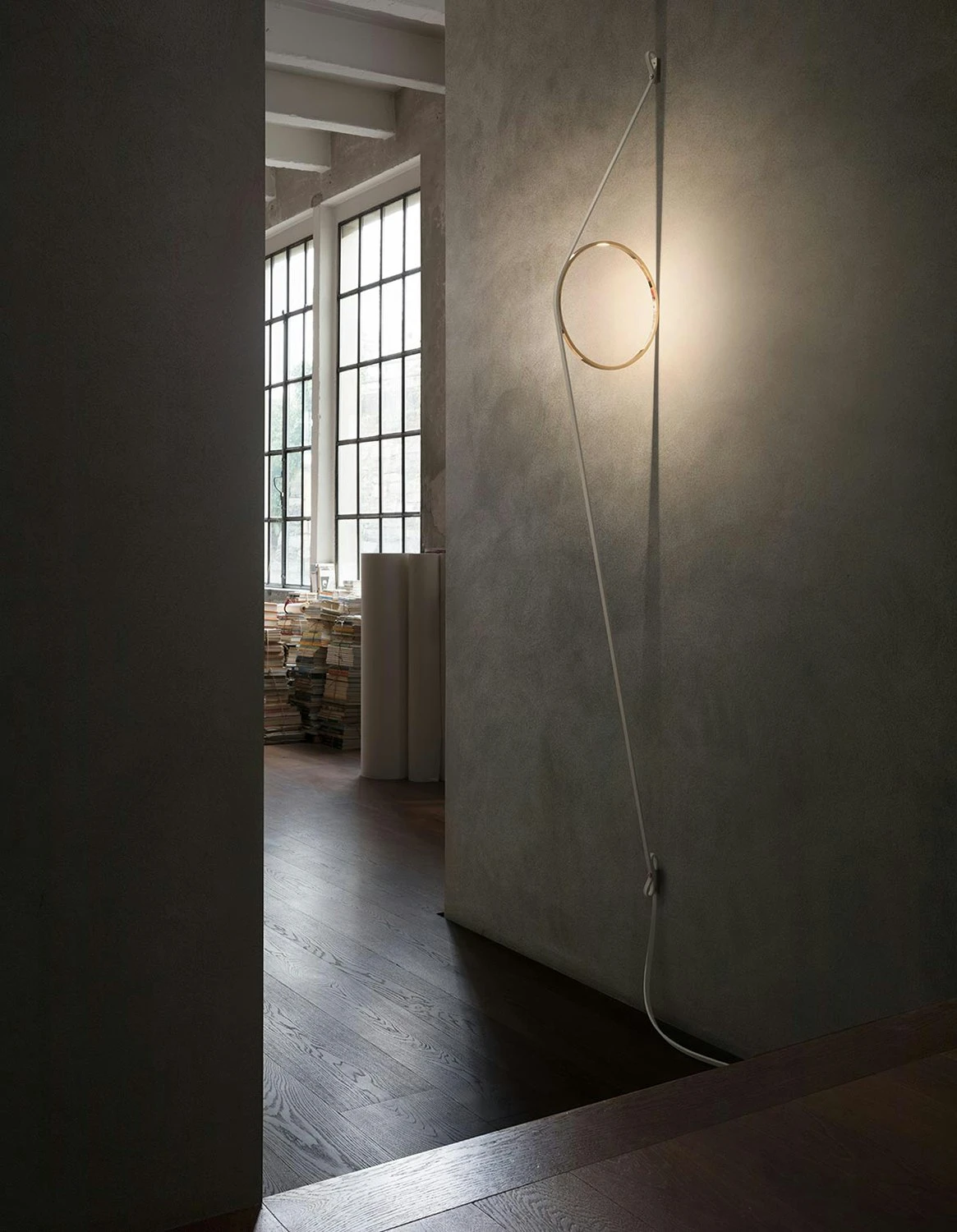 Flos Wirering Wall Lamp, White Cable/Gold Ring