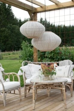 – Hergestellt aus Rattan und Leinen.