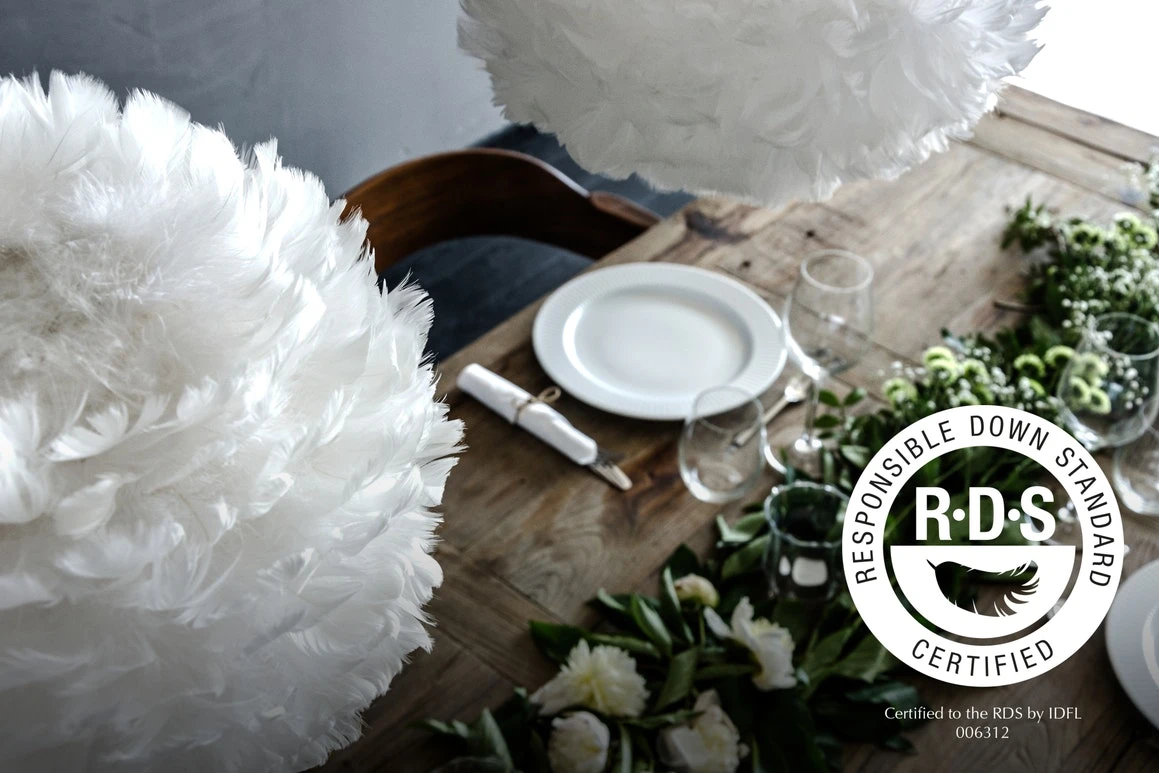– Hergestellt aus Gänsefedern.